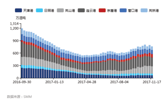 庫(kù)存方面11月中旬,無錫不銹鋼庫(kù)存較10月底增17%至22萬(wàn)噸,佛山庫(kù)存降近15%至約8萬(wàn)噸,兩地庫(kù)存合計(jì)30萬(wàn)噸,較10月底增6.6%。無錫和佛山兩地庫(kù)存變化不一顯示工業(yè)和民用領(lǐng)域終端消費(fèi)分化,工業(yè)領(lǐng)域消費(fèi)弱。